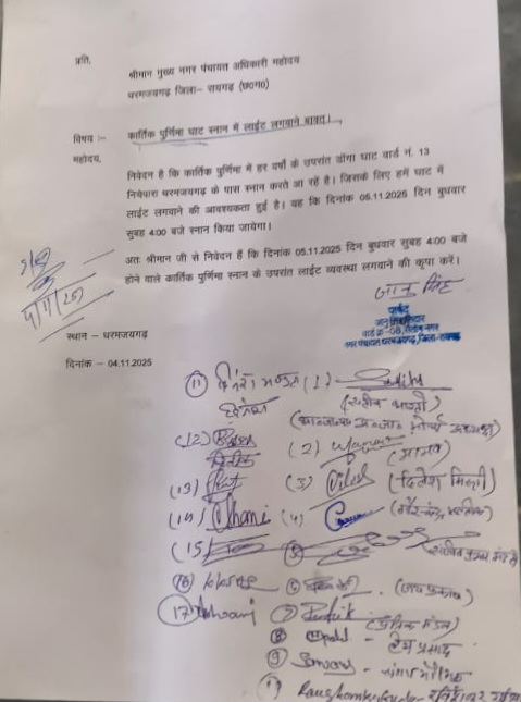 जानू सिदार ने बताया कि प्रत्येक वर्ष की तरह इस बार भी मांड नदी के डोंगा घाट (वार्ड क्रमांक 13) में बड़ी संख्या में श्रद्धालु धार्मिक स्नान एवं पूजा-अर्चना के लिए पहुँचते हैं। उन्होंने कहा कि श्रद्धालुओं की भीड़ को देखते हुए घाट पर सफाई, प्रकाश व्यवस्था, सुरक्षा प्रबंधन और आवश्यक सुविधाएँ सुनिश्चित की जानी चाहिए।